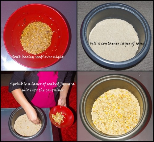 1. Soak barley seeds over night. I used a Jamara mix (barley, corn, wheat) from Nepali grocery shop.