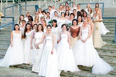 One of my colleagues who got married more than a year ago came up with a brilliant idea with her friends to reuse their wedding dress (they all had white wedding). There are 10 girls altogether one day who were talking about what they are going to do with their wedding dress. Their dresses stared from $1000 to $6000 which was worn only once and was then collecting dust in their closets. So one of them came up with the idea to organise a ‘Wedding dress Night Out’. So last night they went out in their respective wedding dress to a French restaurant. They hired a photographer as well and got some very nice single and group shots.