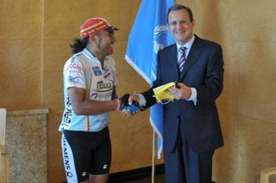 “On November 29, 1998 I set out on an 11 year-long journey to capture my dream, the dream of riding 221,000-kilometres around the world on my bicycle to spread the message of peace and hope for my country and for the world. This mission is not about material gain or international fame. It’s simply about spreading the message of peace. If you see a Nepalese guy panting and puffing on a bicycle with a sticker “I ride therefore I am” please yield and for one second think about how you as an individual can contribute to world peace. This is my tenth year and I have already toured 150 countries and hope to complete the world tour in a total of 11 years. During my tour, I visit schools and clubs in different communities and like to speak about peace, respect for other religions and cultures, living in harmony, respect for human rights and democratic values.