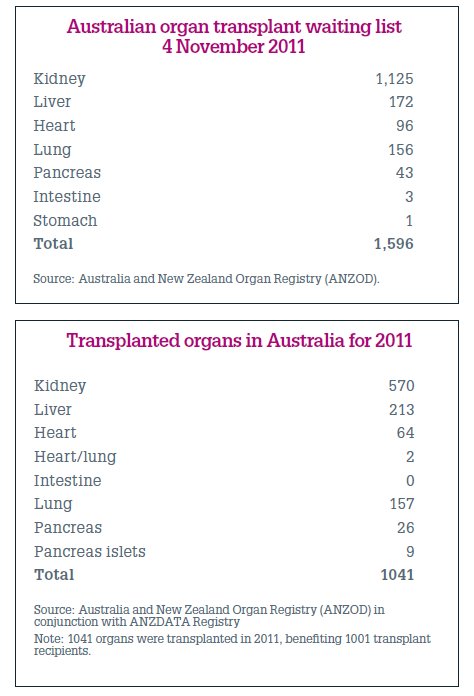 Few people die in such a way that donation is possible. Organ donors must die in hospital where their body can be medically supported until the organs can be donated. There are some 1600 Australians on official waiting lists at any one time.