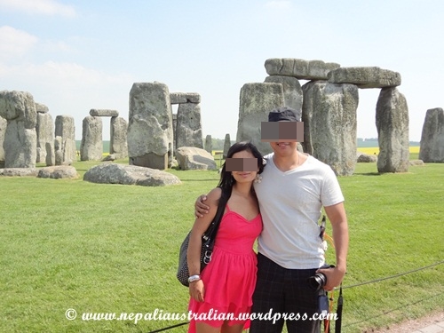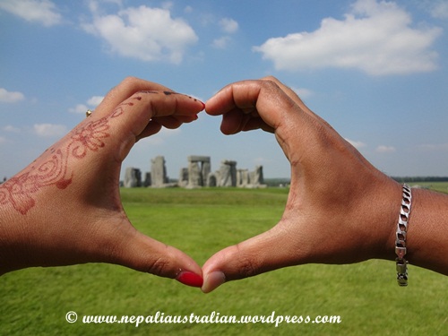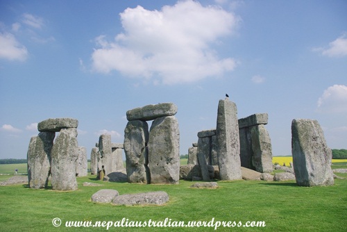 I had always been fascinated by Stonehenge as there is so much mystery surrounding it. So when we were in England, I made sure to go and visit it. We drove through the beautiful landscape of county of Wiltshire, 13km north of Salisbury and arrived at Stonehenge. The day was quite sunny , we parked the car and hurried towards the fence surrounding the henge to look at it closely. As we walked along the fence for a while, we couldn’t find the entrance. I had to ask one of the passerby and he showed me the way, which was next to the parking lot. All the people we had seen close to the fence were not planning to go inside so they were just looking at it through the fence.
