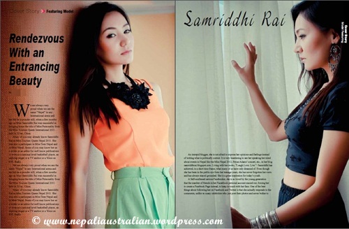 Many of you may already know Samriddhi Rai as Miss Tourism Queen Nepal 2011. She was also a participant in Miss Teen Nepal and in Miss Nepal. Some of you may know her as a writer or an editor for well know publications or even as a national level basketball player, an aspiring singer or a TV anchor or a Voice on RVL Radio.