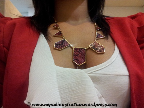 Today at work I wore a necklace as well; it is not a big statement necklace but quite a good size for work.