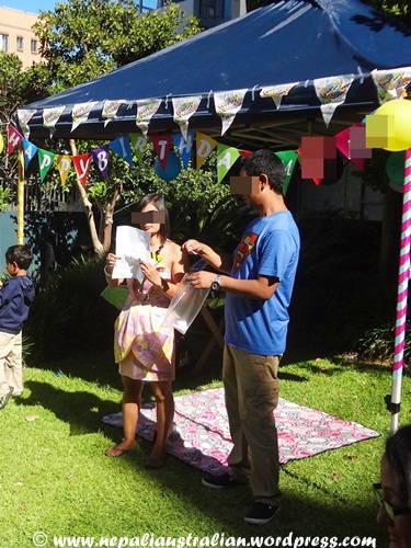 Then we played bingo which was a long game. Egg and Spoon Relay is a game of probability in which players mark off numbers on cards as the numbers are drawn randomly by a caller, the winner being the first person to mark off all their numbers. Please click here if you want to know the details.