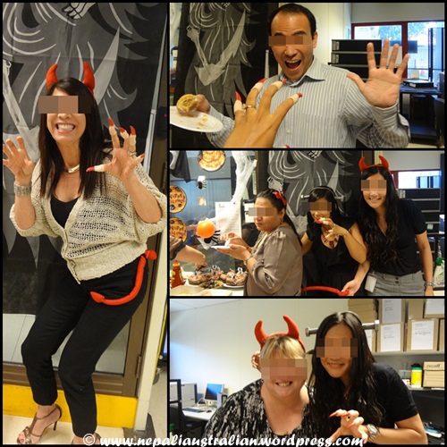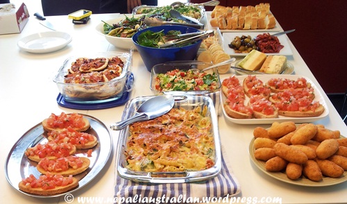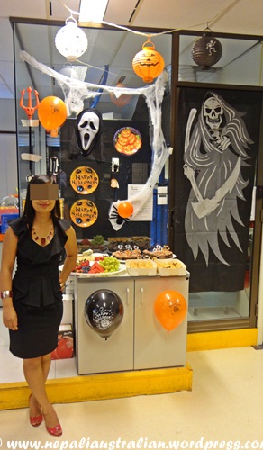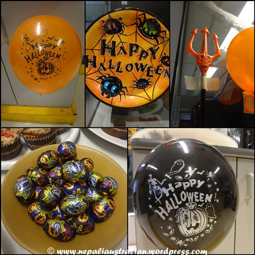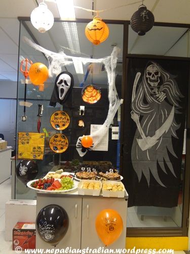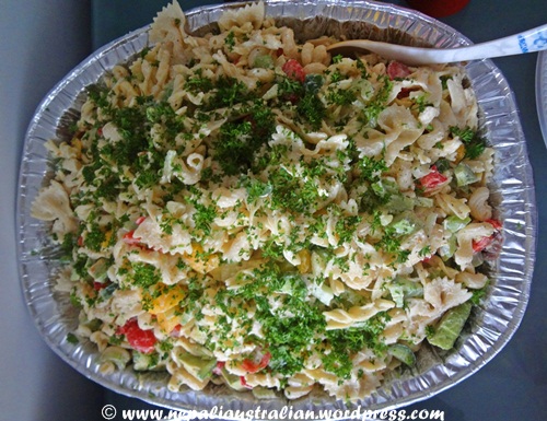 So some of us tackled the decoration and the rest were busy preparing the food. The entrée was BBQ chicken wings with corn cobs, chips, green salad and Methi (Fenugreek) salad. It was followed by main which was hot dog, pasta salad, BBQ prawns, and Greek salad. There was beer and soft drinks as well.