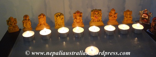 I had candles lit in the puja area as well as twinkle lights to simulate the ambience of Tihar.