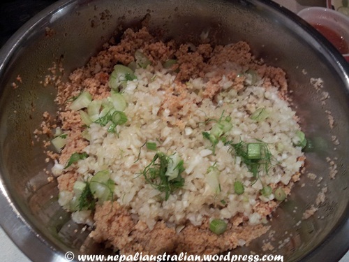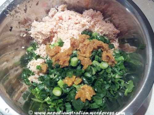 - Finely chop the preserved lemons, trimmed spring onions and coriander (stalks and all).