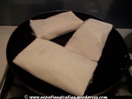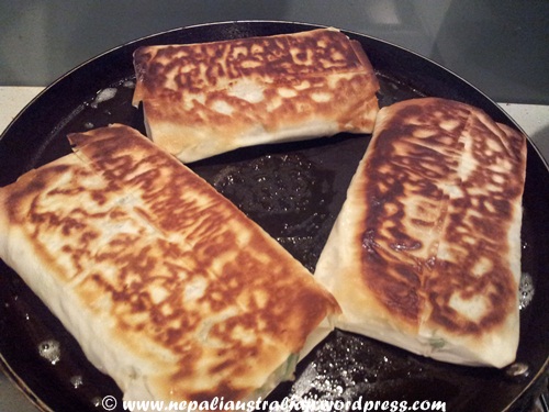 - Put 1 tablespoon of olive oil into the pan, then add the briks and cook until golden and crisp on both sides.