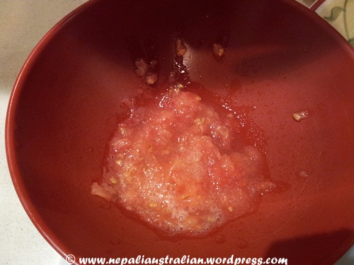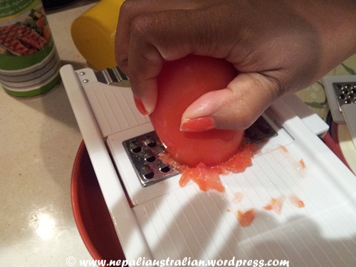- Finely grate the tomato and ginger into a little bowl.
