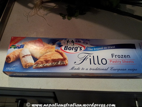 - 4 large sheets of filo pastry (from a 270g pack)
