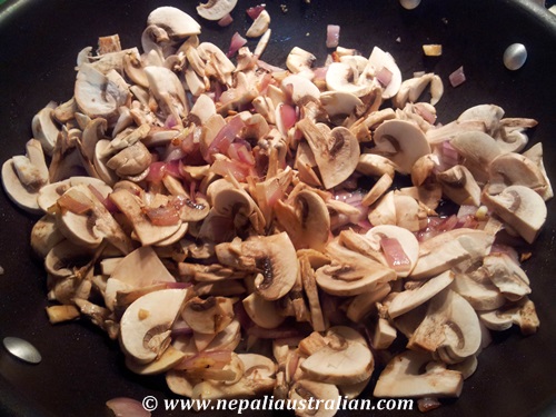 - Add mushrooms and cook for 2-3 minutes, stirring occasionally.