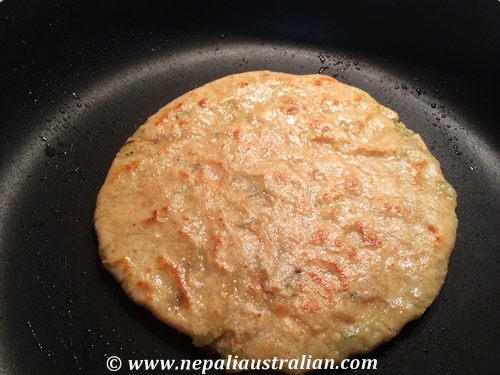 - Once it is brown on one side, flip the paratha to another side and cook it until brown too.