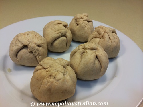 - Divide the dough also into 6 equal parts and make six balls out of them too.