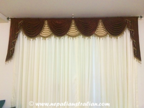 I also got the window valance custom made in Nepal. It is not really Nepalese style but I like it.