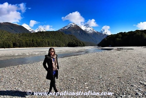 From there, we stopped at Glenorchy Lagoon Walkway and it was a beautiful remote area and we hardly saw anyone else. From time to time, we saw a jet boat but apart from that it was absolutely quite with beautiful snow-capped mountains, nice green hills and us, just spectacular.