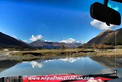 We were picked up in a 4WD vehicle and we went off-roading around the Glenorchy area as our guide pointed out various filming locations for the Lord of the Rings and The Hobbit (and the Wolverine film and also Narnia). We left Queenstown early in the morning and drove up along the lake to Glenorchy.
