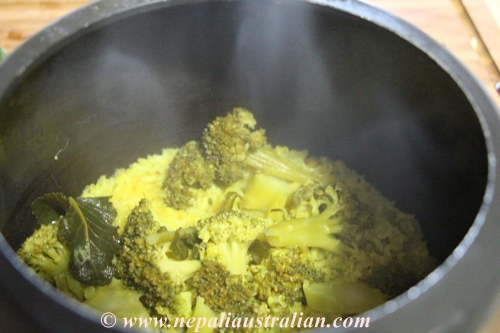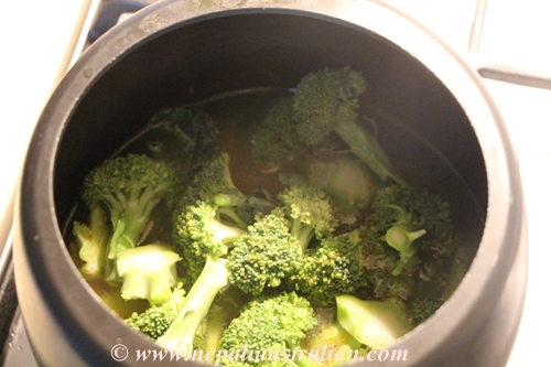 • Add the rice, lentils, broccoli and salt to the pressure cooker.