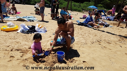 Chhori decided to sit and play with the sand so one of us stayed with her while the others went into the water to swim. As it is a small bay, it was not rough so we swam and enjoyed the amazing view.