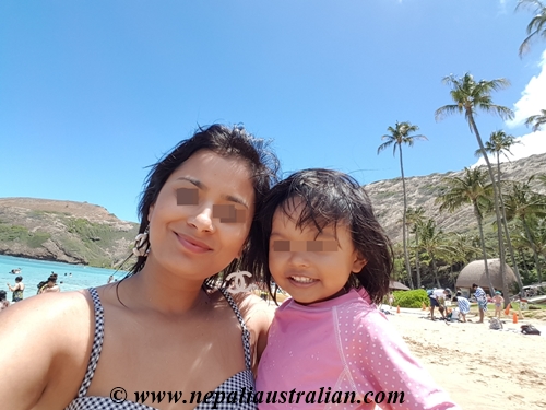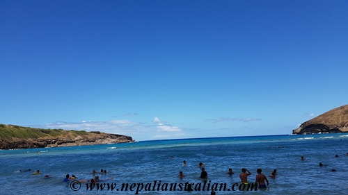 Hanauma Bay was recommended to us by many people for snorkelling but as we had Chhori with us we decided that we will go there and just swim but not snorkel.