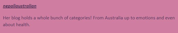 Here is my collection of different awards I got and some kind words from my fellow bloggers.