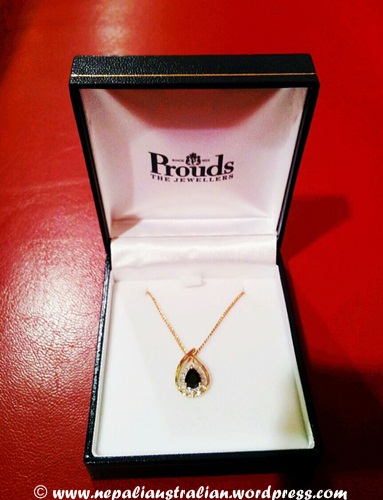 First, he bought me this awesome sapphire necklace that goes perfectly with my sapphire ring he bought last year. I think he is getting better at spoiling me as the years go by :). I am so happy that he does lots of thing to make me happy.