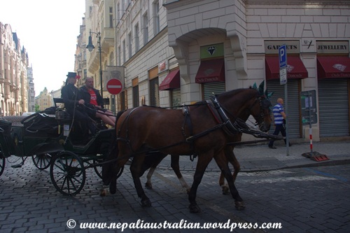 We were dropped off near a bridge in Prague from where we could see the Grand Prague castle. We took a few photos there and then the guide took us to the new town area of Prague. We passed through by beautiful houses and churches which made the town look really amazing. We went through Welceslas Square which was originally a horse market and Charles Square which was originally a cattle market.