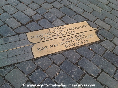 You can still see the Prague meridian in the paving of the square. It indicates the place, where the former Marian column used to cast its shadow at noon. There is an inscription in Czech and Latin languages, saying that time used to be measured according to the meridian.