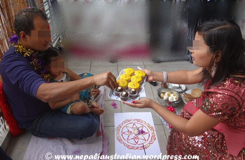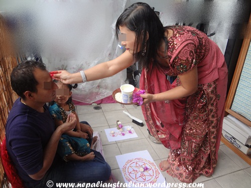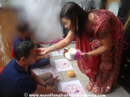 But in the Newar culture, we just use rice, vermilion and yogurt, mix them and use that as a Tika.