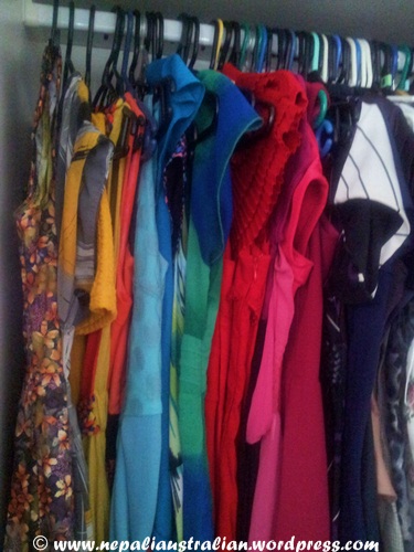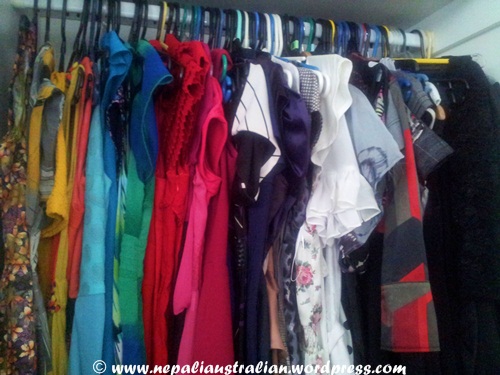 Anyway, last week when I had a day off, I finally managed to clean my wardrobe. It looks much better now. I had a pile that I am giving to charity, a pile that I am taking to Nepal for my cousins and then a pile that I am packing in a box for winter. Now there are only dresses hanging in my cupboard that I will be wearing every day to work.