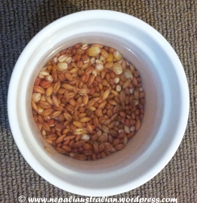- Soak barley seeds overnight. I used a Jamara mix (barley, corn, wheat) from Nepali grocery shop.