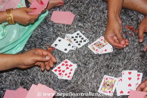 Gambling is illegal in the Nepal but it is usually permitted in public places during this festival. While children are busy flying kites during Dashain, the older members of the family pass their time by getting together and playing cards with each other for money and fun all day long.