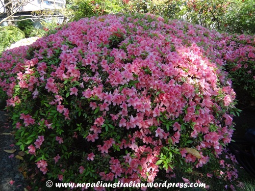 We were there to enjoy the day so we just walked around the garden and enjoyed the sun taking photos from time to time. There was a big pond in the middle of the garden and it had big colourful fishes. I actually forgot that we were in the middle of the city once we were inside. As spring has started here, there were so my beautiful flowers in the garden. I just loved everything in it: the trees, well-trimmed plants, beautiful spring flowers, calm lotus pond and the magnificent temple.