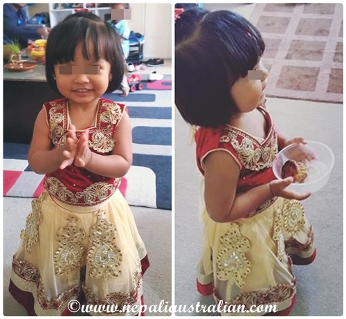 To celebrate Dashain, I dressed Chhori in traditional Nepali kurta. I absolutely love traditional outfits on Chhori, she looks so cute.