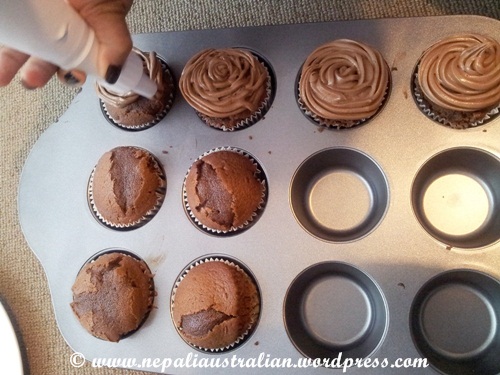 I also decided to do a rose swirl with the icing. As it was my first attempt, it was not very good but here are the steps.
