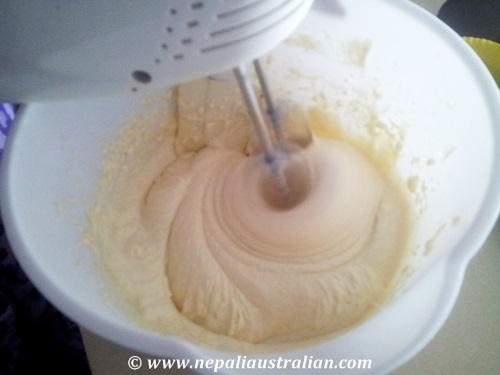 In an electric mixer, beat butter for 2 minutes until pale in colour and creamy. Add sugar one third at a time, beating well between each addition. Add the eggs one at a time, beating for about a minute between each addition. Add the vanilla essence and beat until combined.
