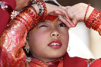 Bahra’ is also known as ‘’Bahra tyagu” in Newari and Surya Darshan or Gufa rakhne in Nepali. In this ceremony, the girl is married to the sun.