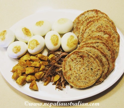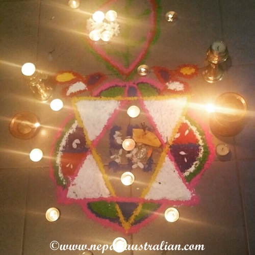Here in Australia, I couldn’t find any crows around, so I improvised by using a photo of a crow, setting it up in our home, and offering flowers and sweets. It’s a humble gesture, but it’s also a way to begin the festival with gratitude and respect for life’s simplest messengers.