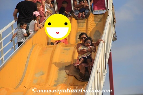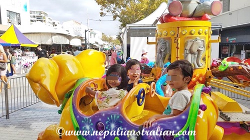 We went on a big slide with the kids on our laps and kids enjoy the elephant merry – go-around as well. They also went into a jumping castle and had heaps of fun.