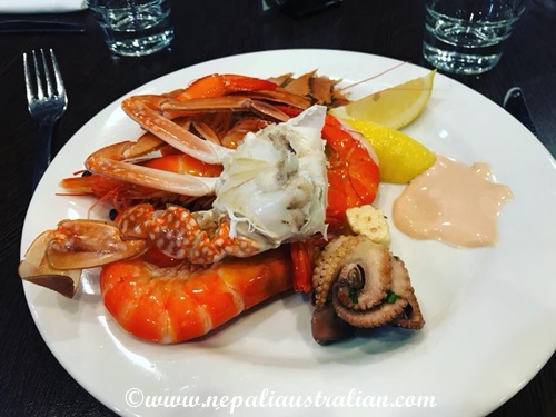 On the Friday we went to a sea food buffet and it was really great and we ate a lot. I loved the prawns and the amazing dessert.