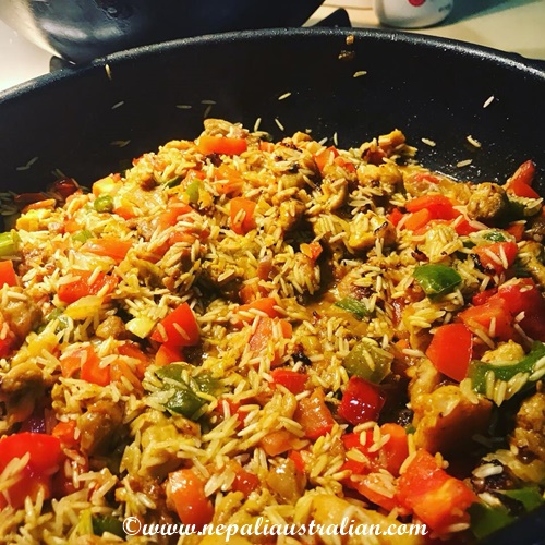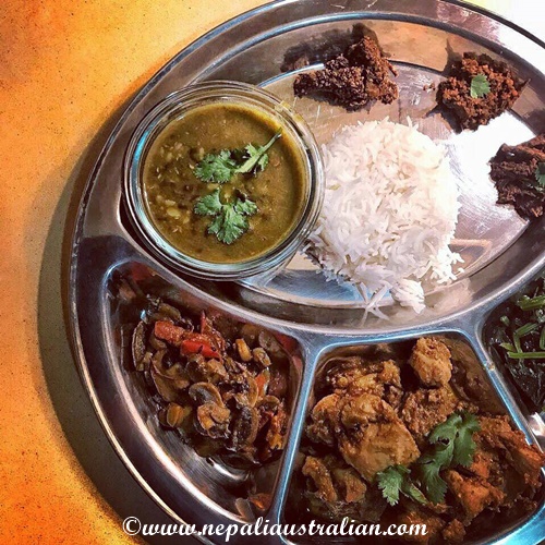 We tried to make it as close as possible to the famous thakali thali and it contained rice, dal, gundruk ko achar, mula ko achar, chicken curry, saag (spinach) and mushroom curry. The whole combination tasted amazing.