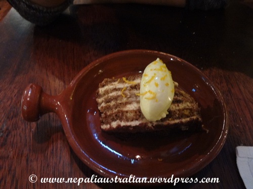 Then the next day, we went out again to celebrate his birthday and this time with my family. We took my parents, my brother, SIL and little nephew for lunch to celebrate in a Newari restaurant called Falcha. The food was hot and spicy there but all of us were happy to enjoy each other’s company. My nephew enjoyed his outing as well. We had a good time and my parents and my brother also had a gift for him.