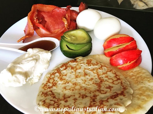 On the third day it was pancakes for breakfast, chatamari and pakauda for lunch and nepali dal-bhaat-tarkari-masu for dinner.