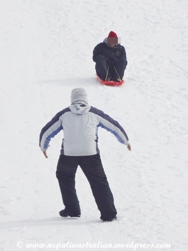 Finally, I could stand and slide on the slope but I had no control of stopping. I was falling down every time I wanted to stop. Lucky no bones were hurt during the process. I was so happy when I could snowboard even for short distance as it made me feel excited to try more.