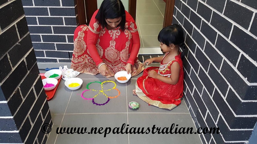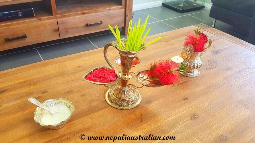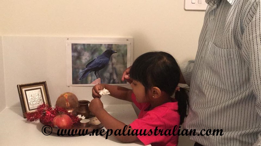 Here in Australia, I couldn’t find any crows around, so I improvised by using a photo of a crow, setting it up in our home, and offering flowers and sweets. It’s a humble gesture, but it’s also a way to begin the festival with gratitude and respect for life’s simplest messengers.