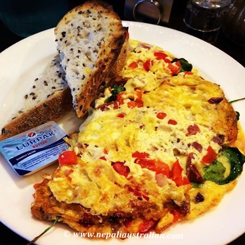 We tried a new café where they served an amazing breakfast. AS ordered the big breakfast and I had Spanish omelette. The food was amazing but my omelette was so big that I could not finished it.