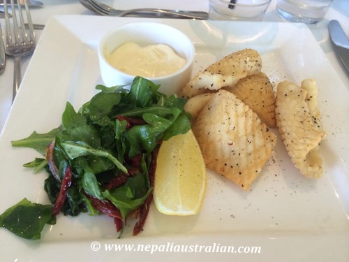 We reached the restaurant just before 2 pm and all of us were already starving. We had made the booking beforehand so we got a table next to the window which had a great view. We ordered Salt & Pepper calamari, BBQ Seafood Platter and Hot & Cold Seafood Platter.